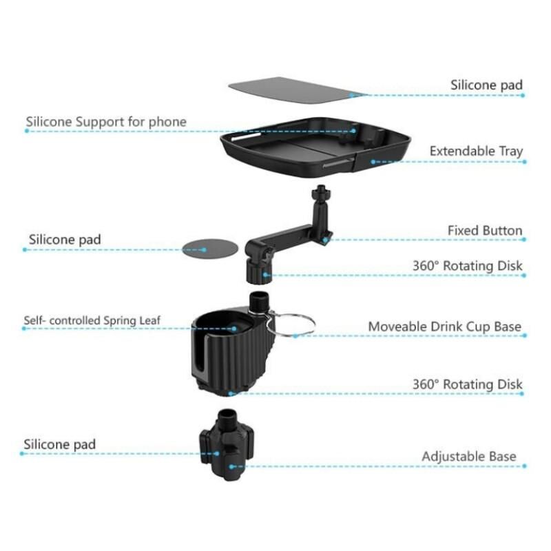 2.Ρυθμιζόμενος Σχεδιασμός: Η βάση της βάσης φλιτζανιού αυτοκινήτου μπορεί να περιστραφεί 360 μοίρες. Η βάση έχει επεκτεινόμενα μπράτσα που επιτρέπουν μεγαλύτερο βάθος και μεγαλύτερα μήκη.