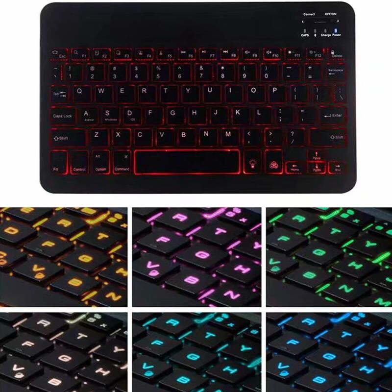 Θήκη δερμάτινου πληκτρολογίου Bluetooth με εξαιρετικά λεπτό οπίσθιο φωτισμό για iPad mini 6 / mini 7 (Μαύρο) με βάση στήριξης & υποδοχή για στυλό.
