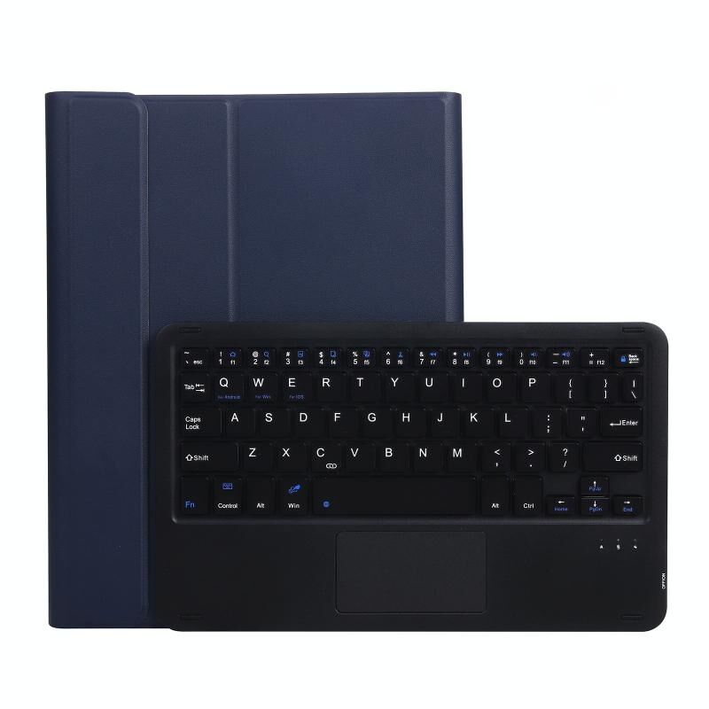 A07B-A Lambskin Texture Square Keycap Bluetooth Keyboard Leather Case with Touch Control For iPad 9.7 2018 & 2017 / Pro 9.7 inch / Air 2(Blue)