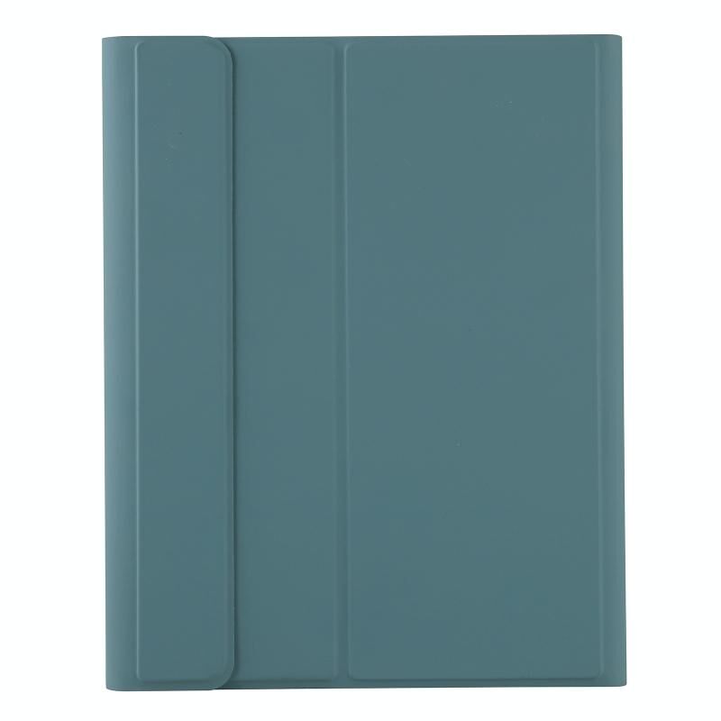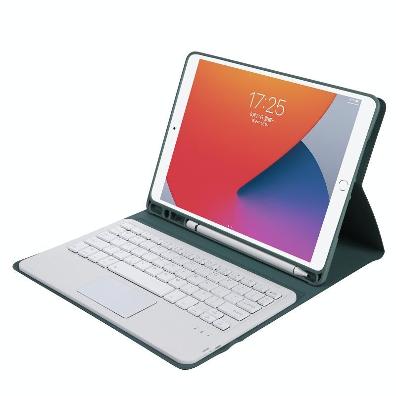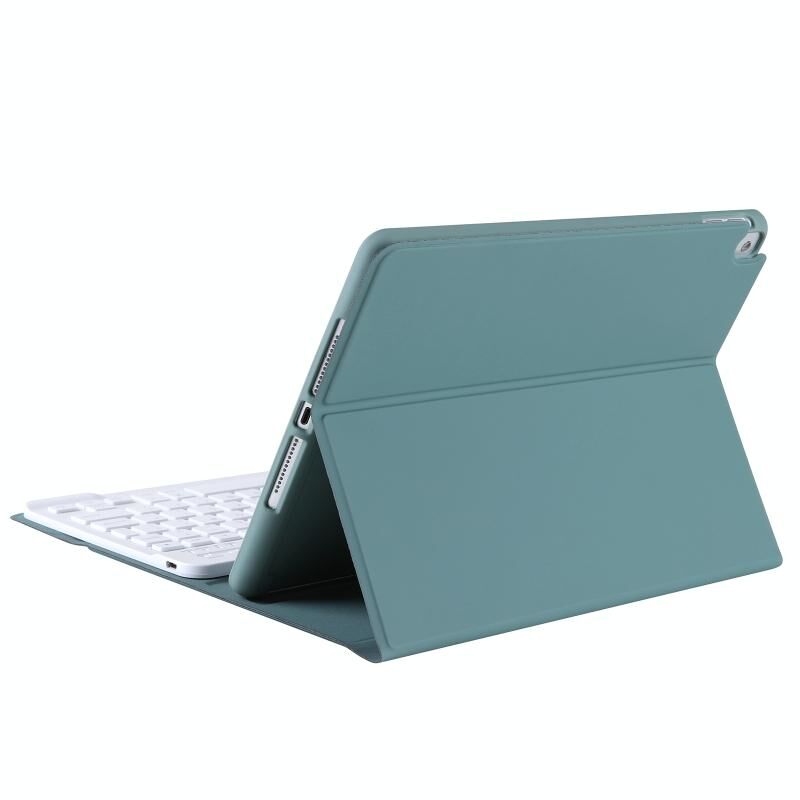 A07B-A Lambskin Texture Square Keycap Bluetooth Keyboard Leather Case with Touch Control For iPad 9.7 2018 & 2017 / Pro 9.7 inch / Air 2(Dark Green)
