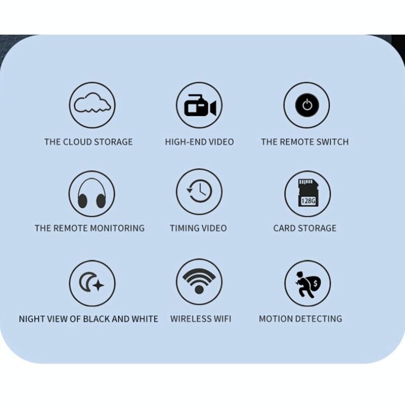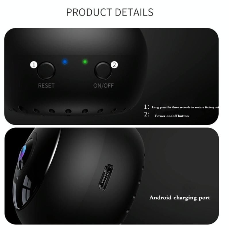 1. Λειτουργίες: Λειτουργίες: βίντεο, ήχος, ανίχνευση κίνησης, απομακρυσμένος συναγερμός, βρόχος βίντεο, WIFI, απομακρυσμένη παρακολούθηση P2P, νυχτερινή όραση υπερύθρων υψηλής ευκρίνειας, ενσωματωμένη προσρόφηση μαγνήτη.
