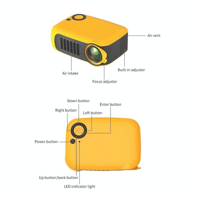 1. Portable and Lightweight: The mini projector is lightweight and compact in size. Smaller than phone, it can be put at any place. You can also take it out for a trip.
