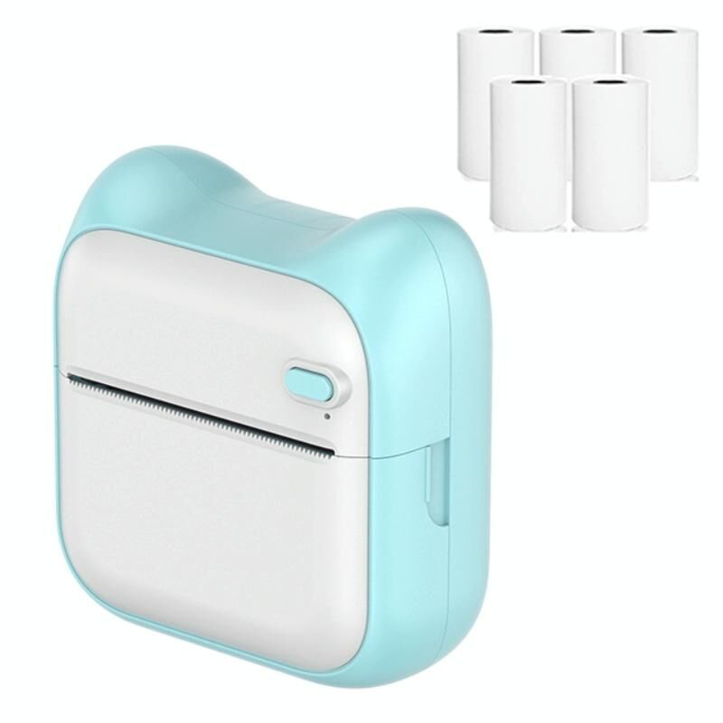 A31 Bluetooth φορητός φορητός αυτοκόλλητος θερμικός εκτυπωτής, χρώμα: μπλε + 5 ρολά χαρτιού εκτύπωσης