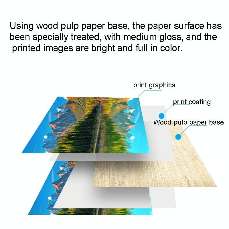 4. Χρησιμοποιώντας βάση χαρτιού από ξυλοπολτό, η επιφάνεια του χαρτιού έχει υποστεί ειδική επεξεργασία και οι εκτυπωμένες εικόνες είναι φωτεινές και γεμάτες χρώμα.