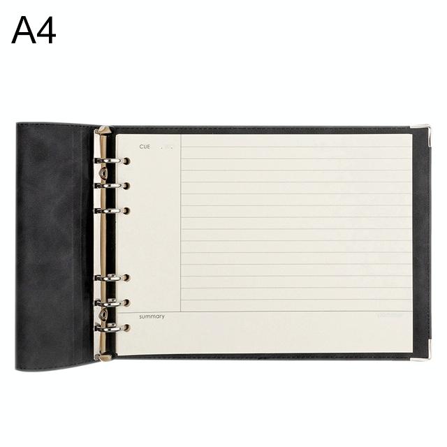 Τετράδιο A4 με αποσπώμενα φύλλα, δερματόδετο, πλέγμα Cornell οριζόντιο (Μαύρο)