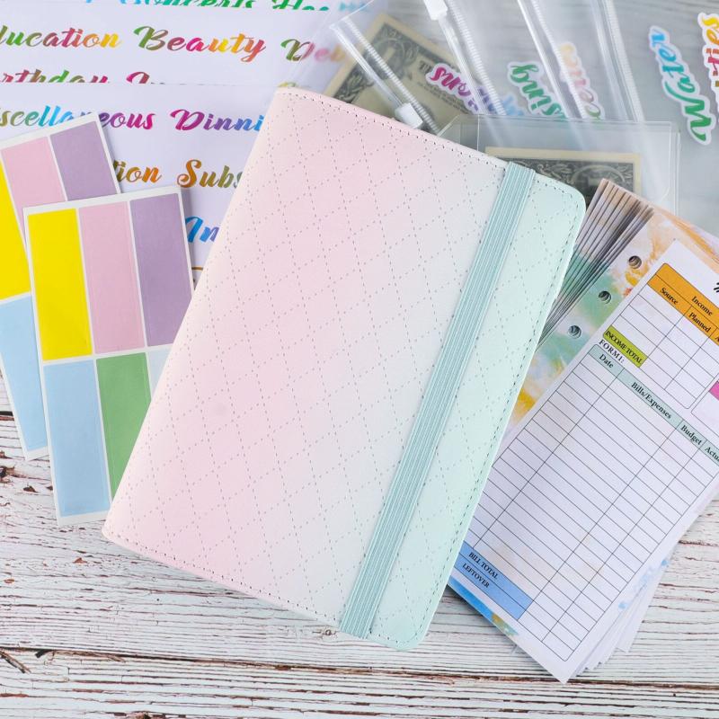 A6 Gradient Macaroon Loose-leaf Handbook Cash Budget Book(Green Blue White)