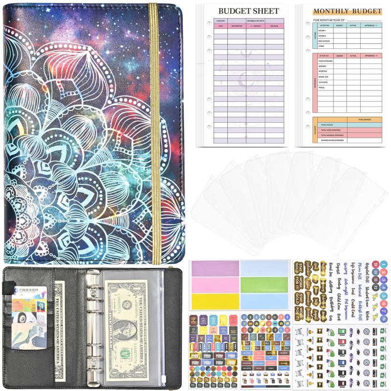 A6 Mandala Binder Financial Plan Notebook PU Leather Cash Budget Book(Star Black)