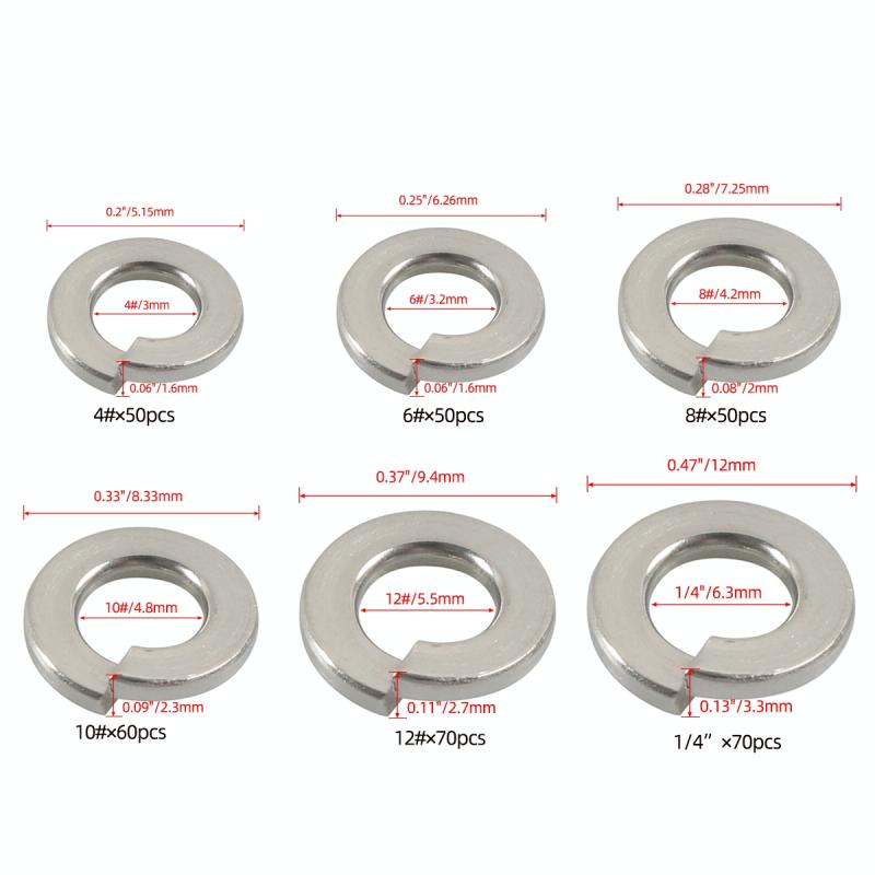 Κιτ ροδελών ελατηρίου ασφάλισης ανοξείδωτου ατσαλιού 304, 6 μεγέθη, 350 τεμαχίων, A7652.