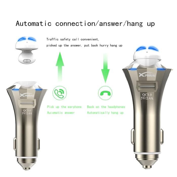 4. Built-in Microphone, supports hands-free calls: Answer phone automatically when pick up the earphone from the car charger; and hang up automatically when put the earphone back on the car charger.