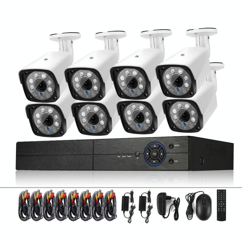 A8B3 / Kit 8CH 1080N Surveillance DVR System and 720P 1.0MP HD Weatherproof Bullet Camera, Support Infrared Night Vision & P2P & Phone Remote Monitor(White)