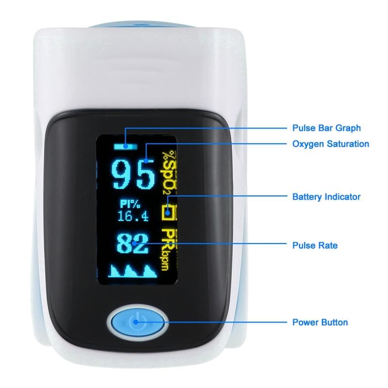 4. Εμφάνιση τιμής κορεσμού οξυγόνου αίματος, τιμής καρδιακού ρυθμού, εμφάνιση γραφήματος ράβδων, εμφάνιση κυματομορφής παλμού, ένδειξη ισχύος μπαταρίας.