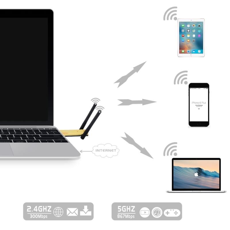5. Μέγιστη ταχύτητα έως και 5GHz 866Mbps ή 2.4GHz 300Mbps.