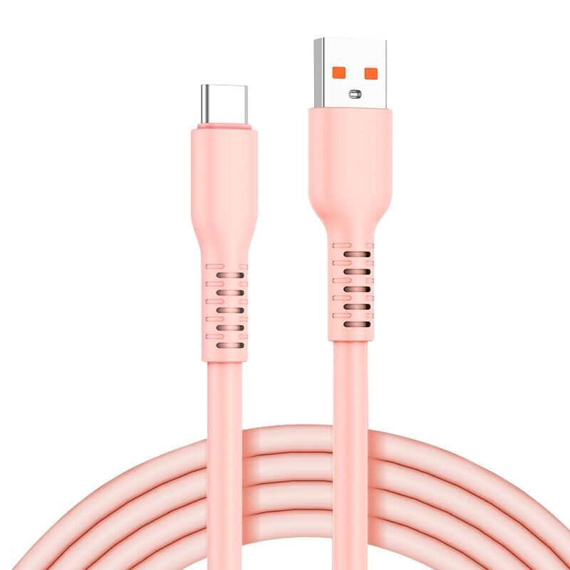 Καλώδιο δεδομένων USB σε USB-C/Type-C από υγρή σιλικόνη, ADC-014 6A, Μήκος: 1μ (Ροζ)