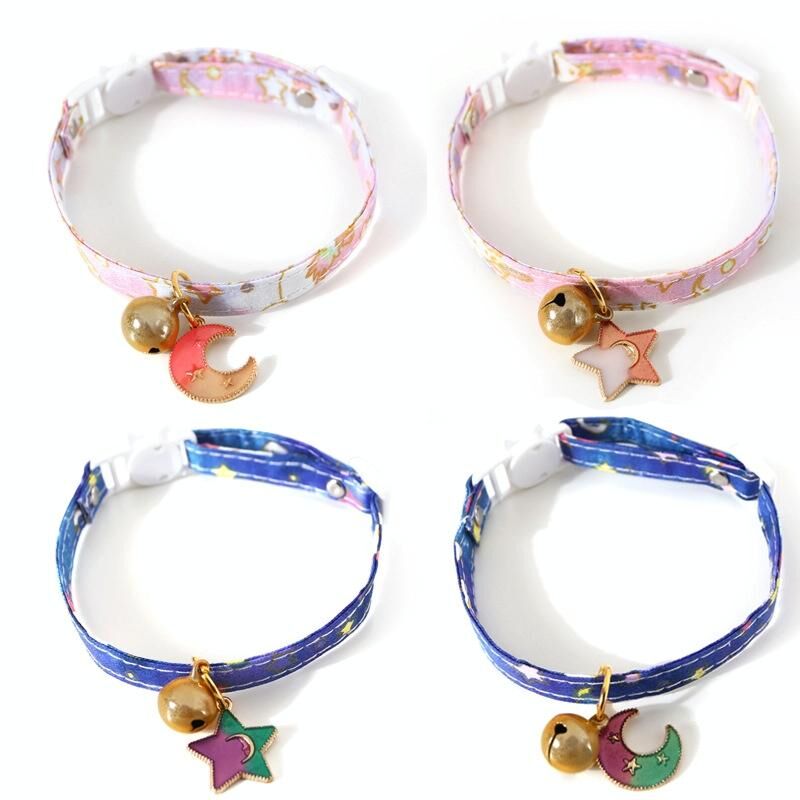 Ρυθμιζόμενη γάτα σκύλος κουνέλι ασφάλεια πόρπη κολάρο κατοικίδιο ζώο αξεσουάρ, μέγεθος: S 17-32cm, στυλ: φεγγάρι (ροζ)