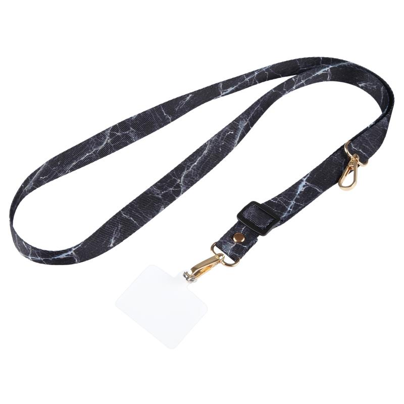 Adjustable Crossbody Mobile Phone Wide Long Lanyard(Black Marble)