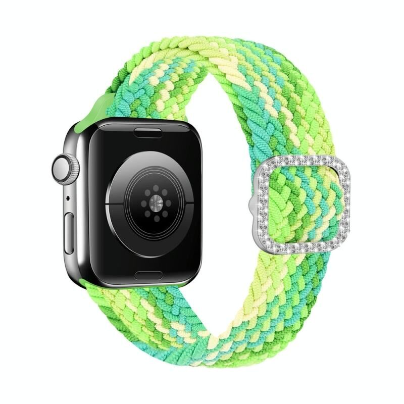 Ρυθμιζόμενο Ελαστικό Πλεκτό Νάιλον με Αγκράφα Διαμαντιού για Apple Watch Series 7 & 6 & SE & 5 & 4 40mm/3 & 2 & 1 38mm (Λιμονί πράσινο)