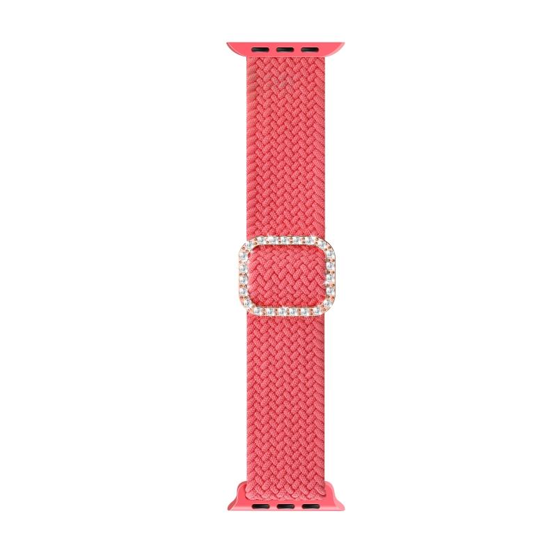 Ρυθμιζόμενο Ελαστικό Πλεκτό Νάιλον με Αγκράφα Διαμαντιού για Apple Watch Series 7 & 6 & SE & 5 & 4 40mm/3 & 2 & 1 38mm (ρόζ)
