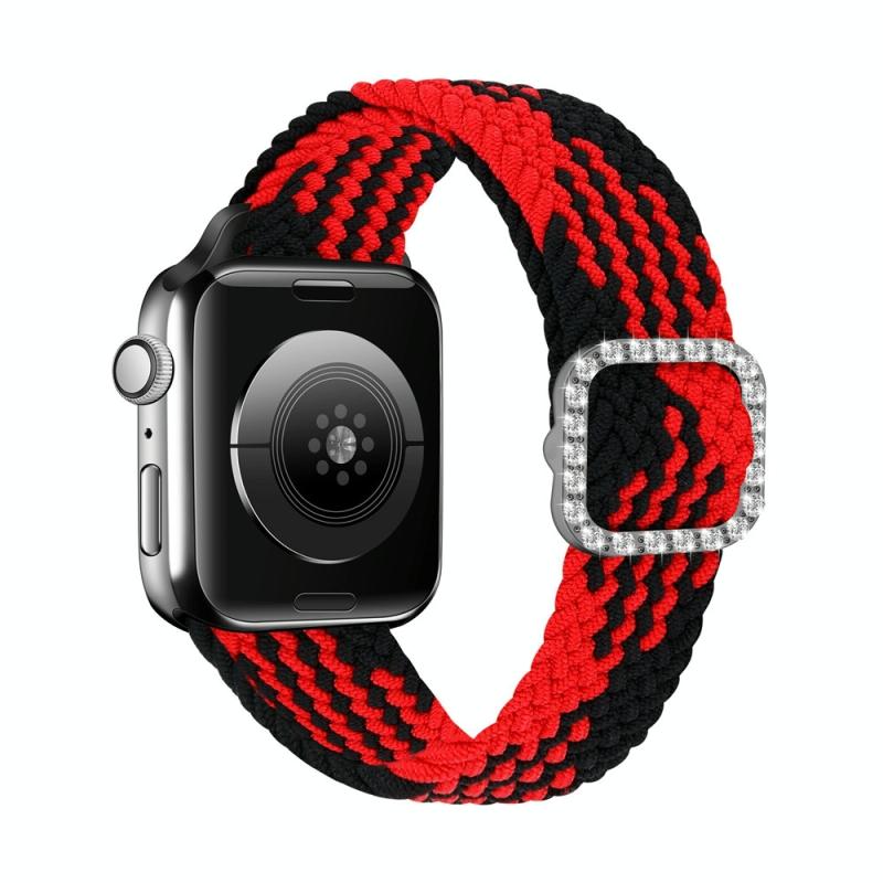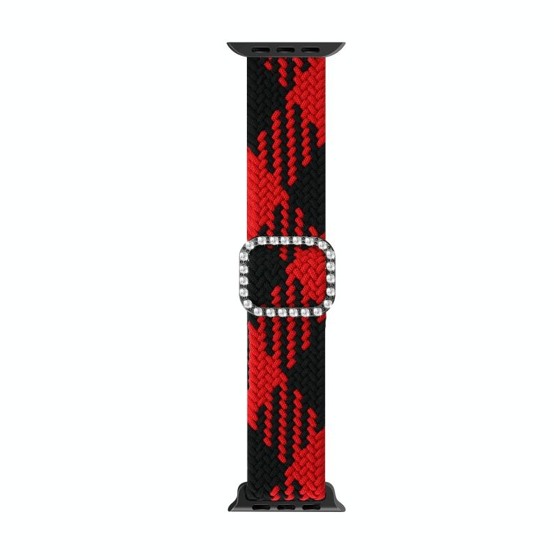 Ρυθμιζόμενο Ελαστικό Πλεκτό Νάιλον με Αγκράφα Διαμαντιού για Apple Watch Series 7 & 6 & SE & 5 & 4 44mm/3 & 2 & 1 42mm (Κόκκινο-Μαύρο)