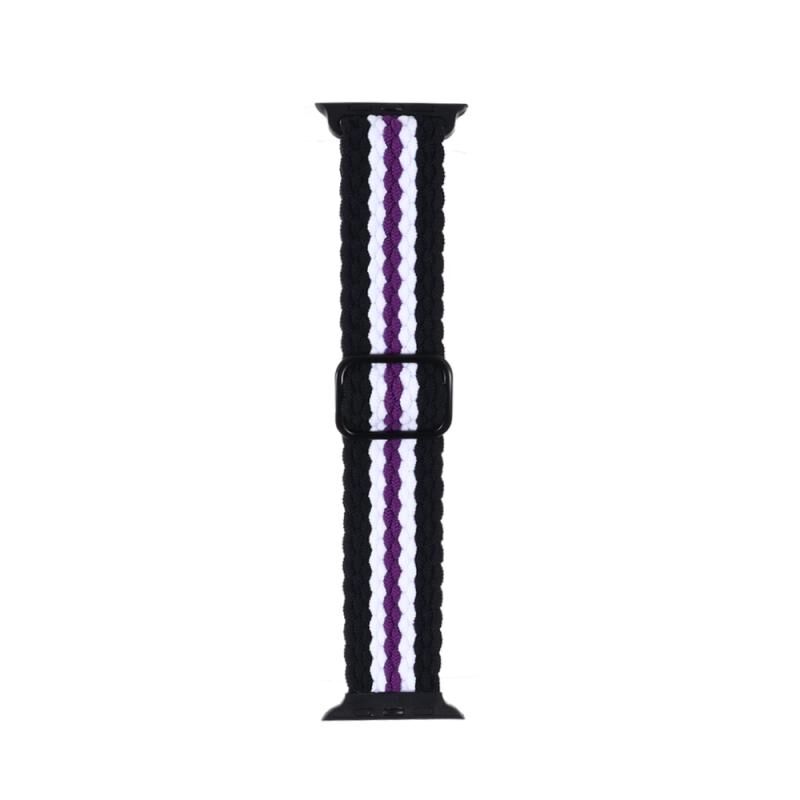 Ρυθμιζόμενο λουρί ρολογιού από υφαντό νάιλον με ρίγες για Apple Watch Series 9&8&7 41mm / SE 3&SE 2&6&SE&5&4 40mm / 3&2&1 38mm (Μαύρο Κίτρινο Λευκό Κόκκινο)