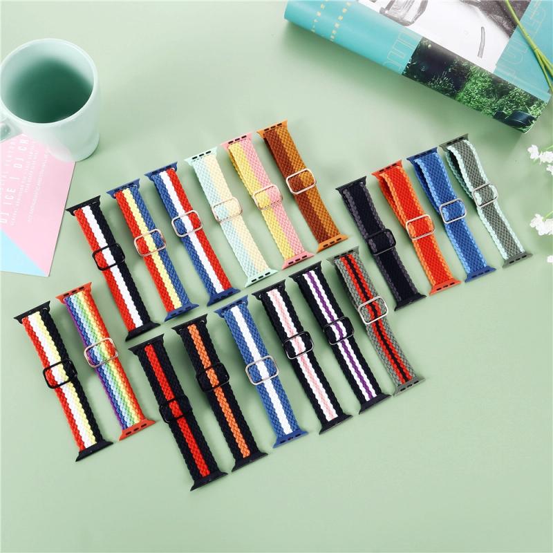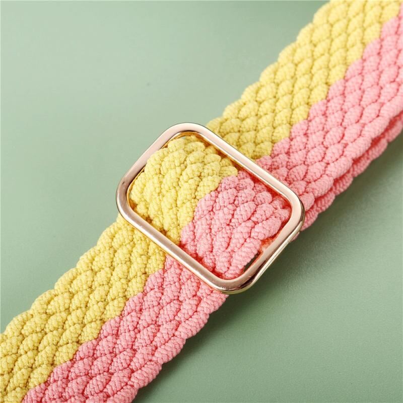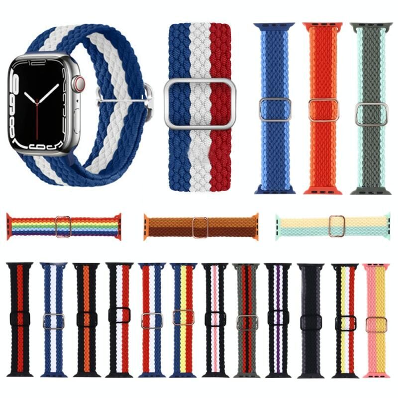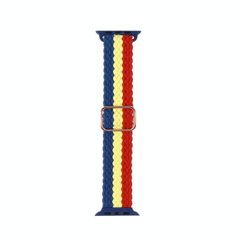 Ρυθμιζόμενο λουρί ρολογιού από υφαντό νάιλον με ρίγες για Apple Watch Series 9&8&7 41mm / SE 3&SE 2&6&SE&5&4 40mm / 3&2&1 38mm (Μαύρο Κίτρινο Λευκό Κόκκινο)