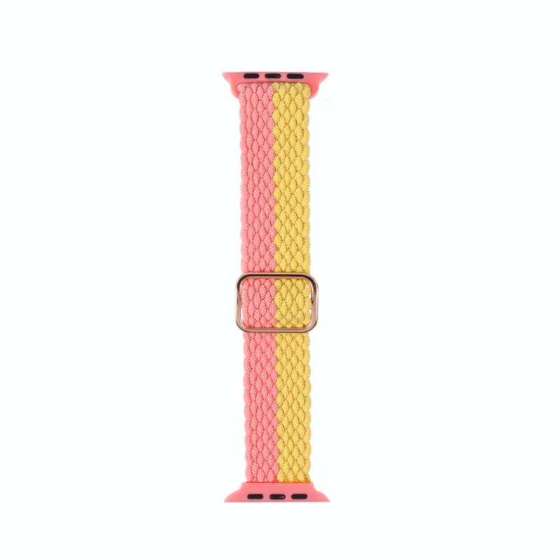 Ρυθμιζόμενο λουρί ρολογιού από υφαντό νάιλον με ρίγες για Apple Watch Series 9&8&7 41mm / SE 3&SE 2&6&SE&5&4 40mm / 3&2&1 38mm (Μαύρο Κίτρινο Λευκό Κόκκινο)