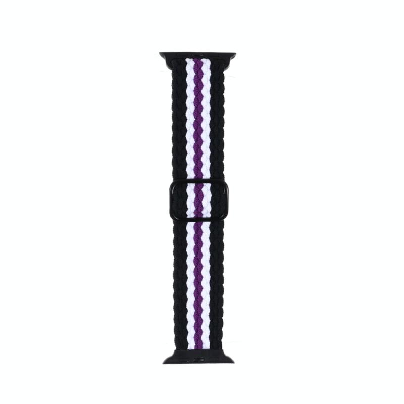 Adjustable Striped Woven Nylon Strap Watch Band For Apple Watch Ultra 49mm&Watch Ultra 2 49mm / Series 9&8&7 45mm / SE 3&SE 2&6&SE&5&4 44mm / 3&2&1 42mm(Black White Purple)