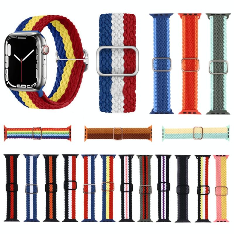 Ρυθμιζόμενο λουρί ρολογιού από υφαντό νάιλον με ρίγες για Apple Watch Ultra 49mm & Watch Ultra 2 49mm / Series 9 & 8 & 7 45mm / SE 3 & SE 2 & 6 & SE & 5 & 4 44mm / 3 & 2 & 1 42mm (Μαύρο Κίτρινο Λευκό Κόκκινο)