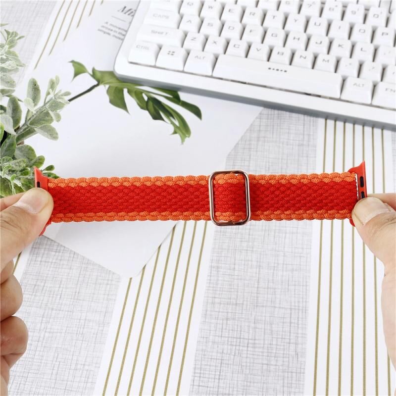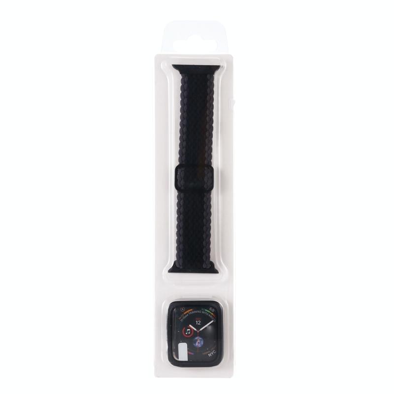 Ρυθμιζόμενο λουρί ρολογιού από υφαντό νάιλον με ρίγες + Σετ θήκης ρολογιού για Apple Watch Series 7 45mm/6&SE&5&4 44mm/3&2&1 42mm (Μαύρο Λευκό Μωβ)