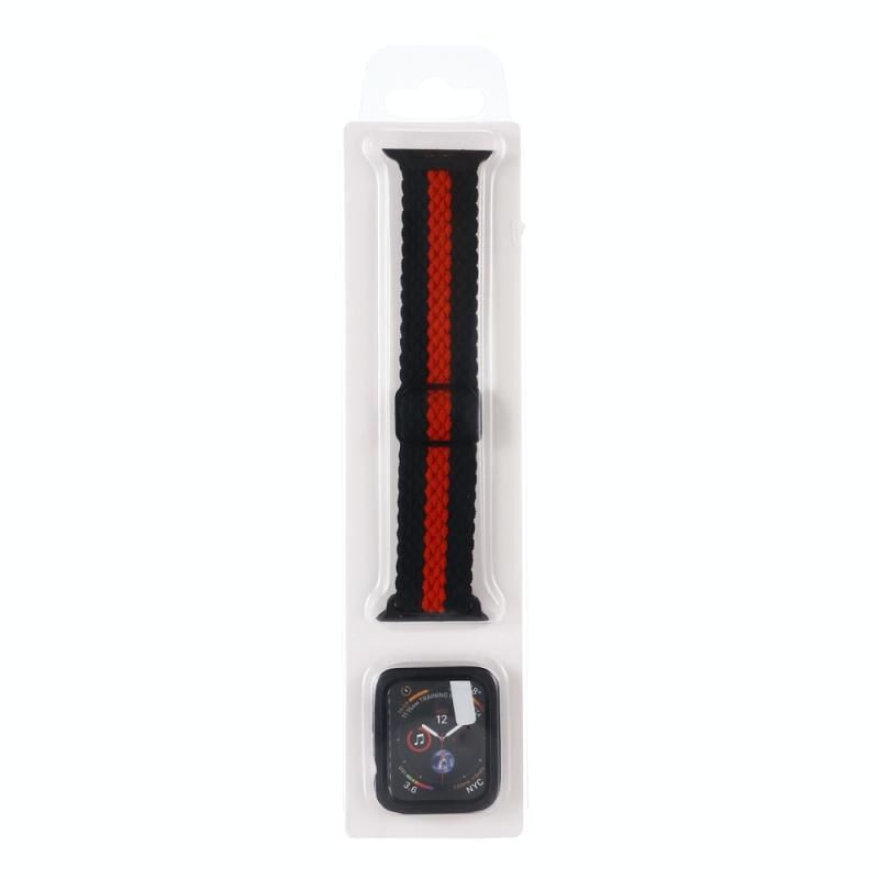 Ρυθμιζόμενο λουρί ρολογιού από υφαντό νάιλον με ρίγες + Σετ θήκης ρολογιού για Apple Watch Series 7 45mm/6&SE&5&4 44mm/3&2&1 42mm (Μαύρο Λευκό Μωβ)