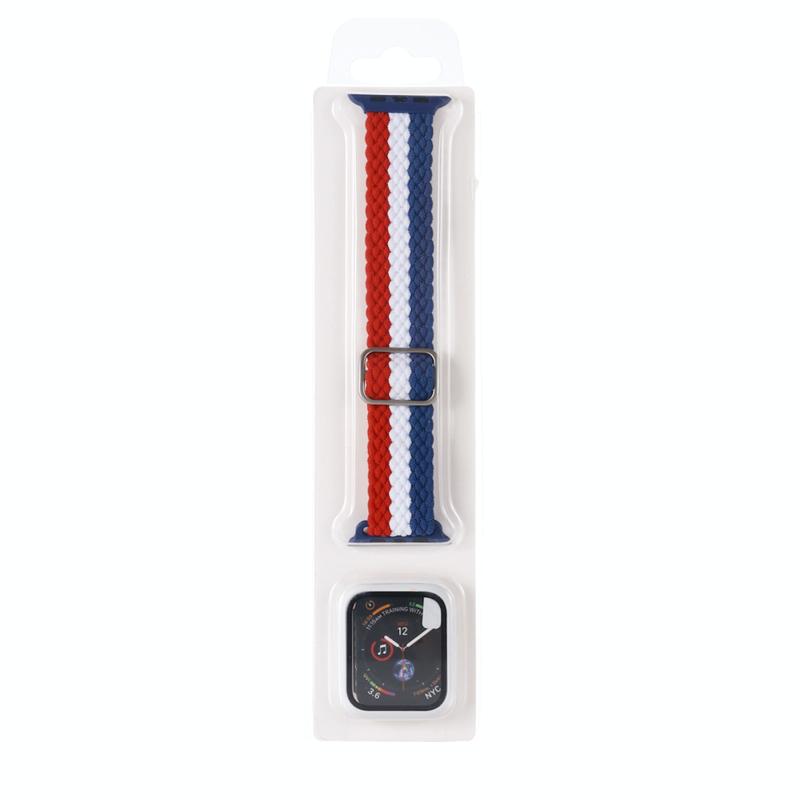 Ρυθμιζόμενο λουρί ρολογιού από υφαντό νάιλον με ρίγες + Σετ θήκης ρολογιού για Apple Watch Series 7 45mm/6&SE&5&4 44mm/3&2&1 42mm (Μαύρο Λευκό Μωβ)
