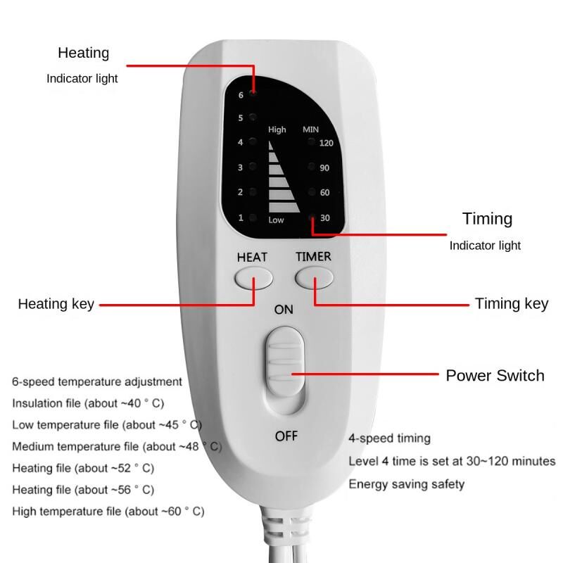 2. Το καλώδιο τροφοδοσίας μπορεί να αποσυνδεθεί, το θερμαινόμενο μαξιλάρι μπορεί να πλυθεί