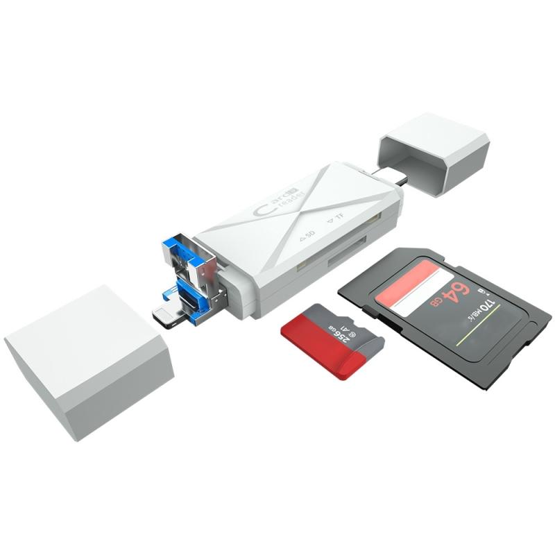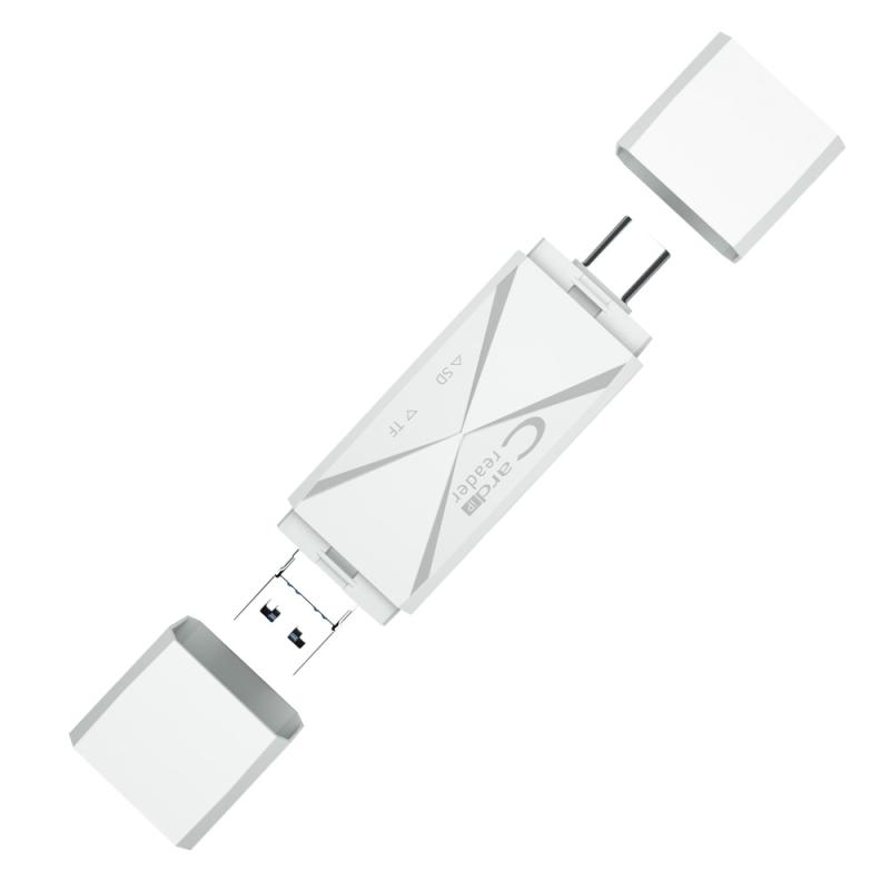 ADS-218 8 Pin+USB+Type-C Multi-function Card Reader(White)