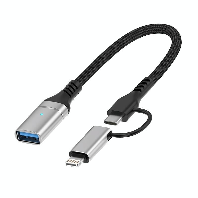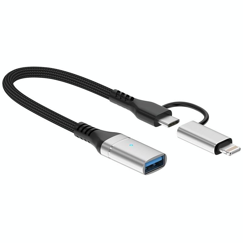 Προσαρμογέας ADS-619 2 σε 1 Type-C και 8 ακίδων σε USB 3.0 OTG (Ασημί)