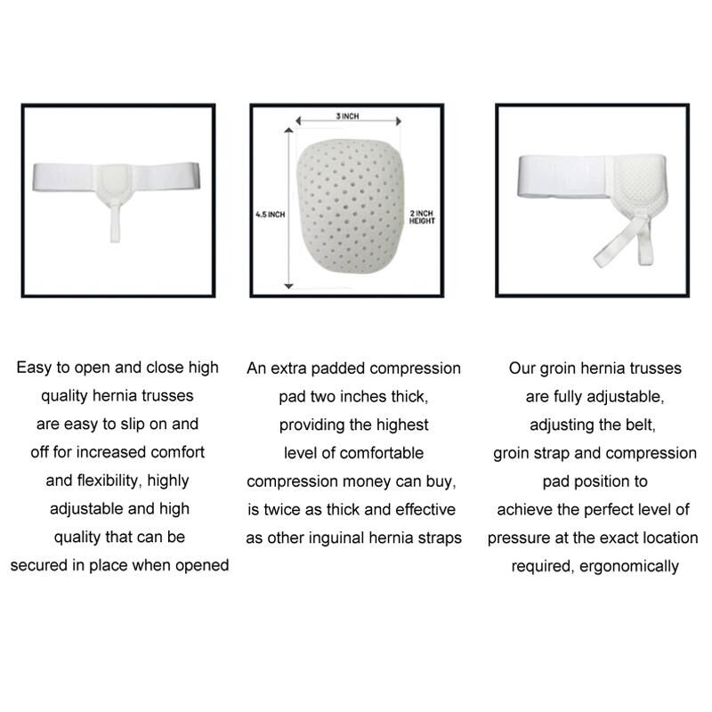 4. Slim and low profile, comfortable fit, using good elastic and breathable material Our inguinal hernia belt will conform to your body for ergonomic comfort, slim, wear it under your clothes to minimize Exposed, except for compression pads, which are required for pressure