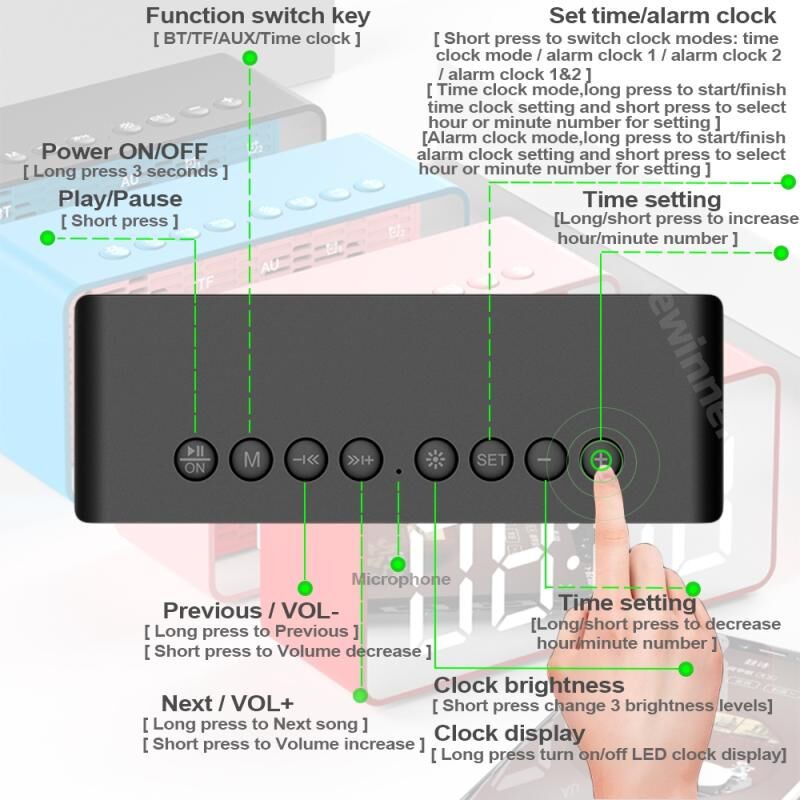 AEC BT506 Speaker with Mirror, LED Clock Display, Dual Alarm Clock, Snooze, HD Hands-free Calling, HiFi Stereo(Black) (AEC)