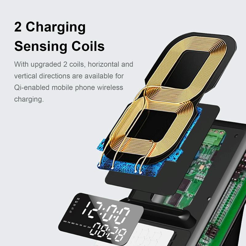 1. Charging Sensing Coils: with upgraded 2 coils, horizontal and vertical directions are available for Qi-enabled mobile phone wireless charging.