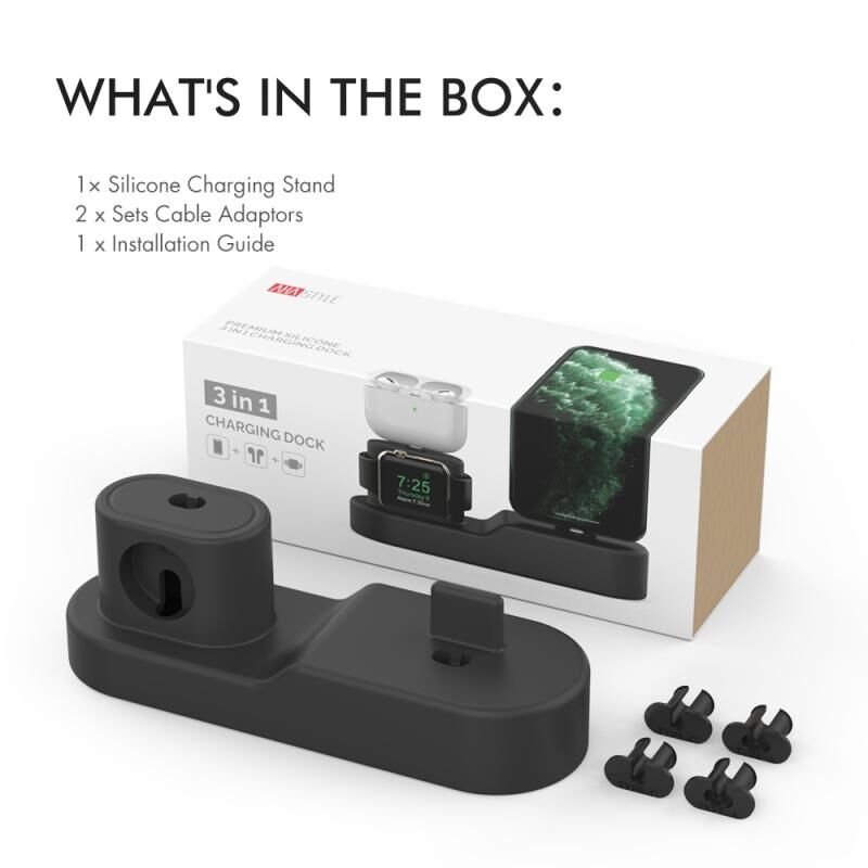 Βάση Φόρτισης και Αποθήκευσης Επιτραπέζιου Σιλικόνης 3 σε 1 για iPhone / Apple Watch / AirPods (Μαύρο) (AhaStyle) - AhaStyle PT28-3
