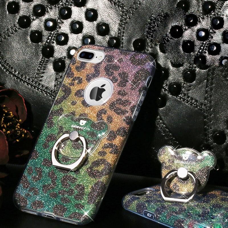 Θήκη προστασίας AIQAA για iPhone 8 Plus & 7 Plus από TPU με γκλίτερ και αντιολισθητική επιφάνεια, με δακτύλιο στήριξης σε σχήμα αρκούδας (εκτύπωση λεοπάρδαλης) (AIQAA)