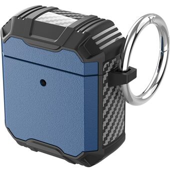 For AirPods Pro Colorful Weaving Texture Earbuds Box PC Case with Hook(Blue)