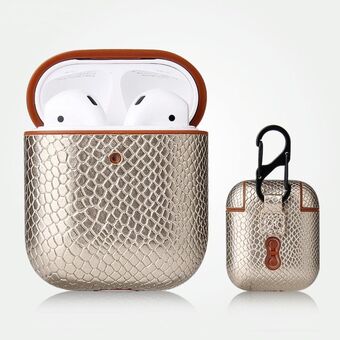 For AirPods 1 & 2 Anti-fall Snakeskin Texture PU Leather Protective Case with Carabiner(Gold)