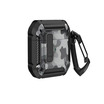Two-Tone Printed Earphone Case with Switch Lock & Carabiner For AirPods 1/2(Black + Camouflage Gray)