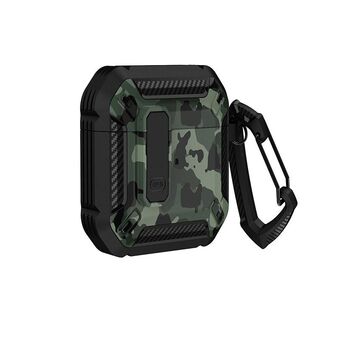 Two-Tone Printed Earphone Case with Switch Lock & Carabiner For AirPods 1/2(Black + Camouflage Green)
