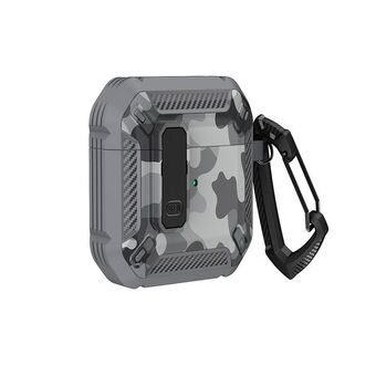 Two-Tone Printed Earphone Case with Switch Lock & Carabiner For AirPods 1/2(Grey + Camouflage Grey)