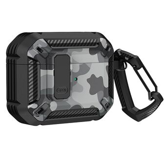 Two-Tone Printed Earphone Case with Switch Lock & Carabiner For AirPods Pro(Black + Camouflage Gray)