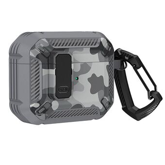 Two-Tone Printed Earphone Case with Switch Lock & Carabiner For AirPods Pro(Grey + Camouflage Grey)