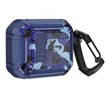 Two-Tone Printed Earphone Case with Switch Lock & Carabiner For AirPods Pro(Black + Camouflage Blue)