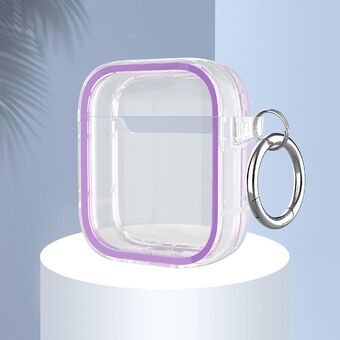 Two-color Photo Frame PC+TPU Anti-fall Wireless Earphone Case with Hook For AirPods 1/2(Purple)