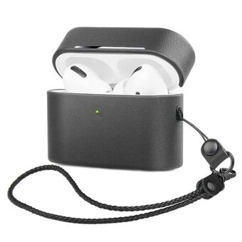 Earphone Cowhide Leather Sleeve Storage Box Protective Case with Lanyard For AirPods Pro(Black)