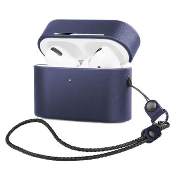 Wireless Earphone Protective Shell Leather Case Split Storage Box For Airpods Pro(Deep Blue)