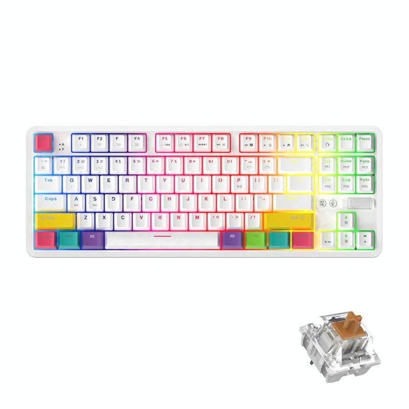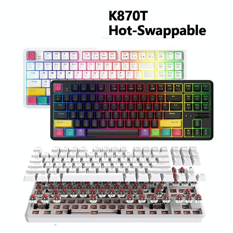Ajazz K870T Μηχανικό πληκτρολόγιο γραφείου/παιχνιδιού 87 πλήκτρων με δυνατότητα αλλαγής πλήκτρων εν κινήσει, διπλής λειτουργίας Bluetooth/Ενσύρματο, με οπίσθιο φωτισμό RGB, άξονας Tea (Μαύρο) (Ajazz)